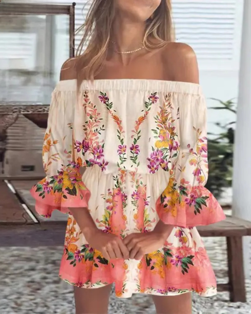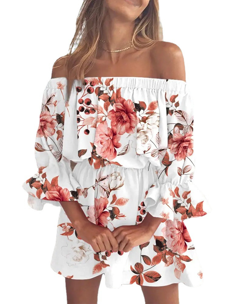 2023 European and American cross-border Amazon independent station sexy fashion one-shoulder print dress women’s clothing in stock