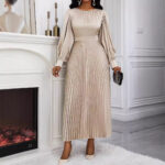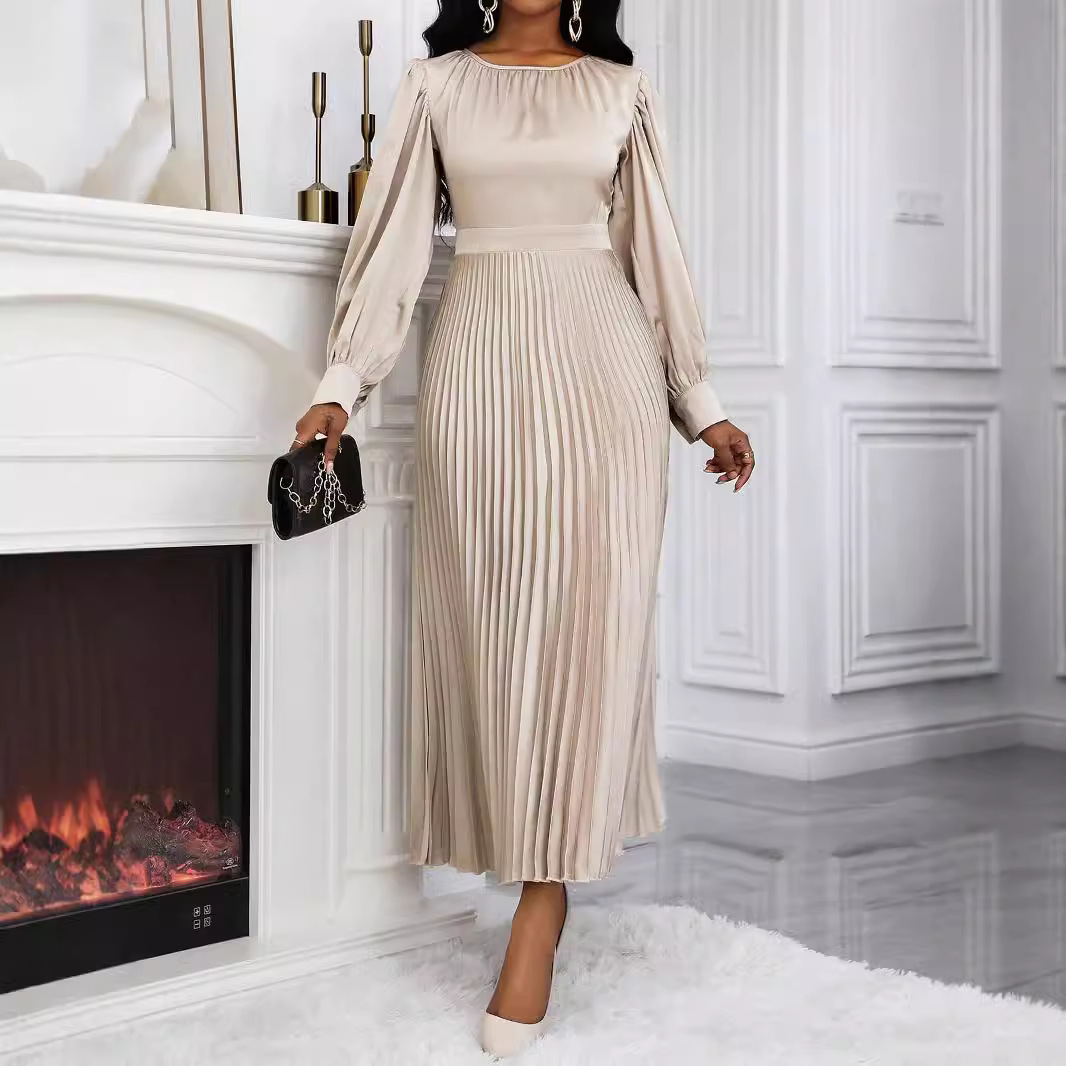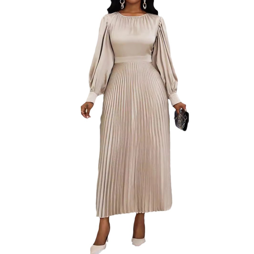 Amazon cross-border European and American AliExpress independent station European and American cross-border women’s waist tunic loose long-sleeved pressed pleated dress