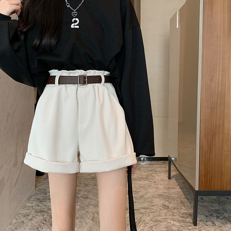 Corduroy wide-leg shorts women’s autumn and winter 2024 new Korean version of high-waisted slimming student boots pants