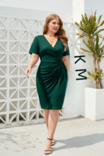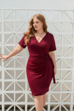 Be the first to review “Cross border plus size women’s plus size solid color casual vacation dress lace-up vacation v-neck midi dress” Cancel reply