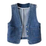 Be the first to review “Hong Kong style retro denim vest short female slim vest 2023 spring and autumn new casual collarless waistcoat” Cancel reply