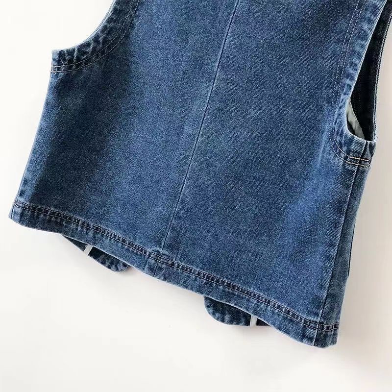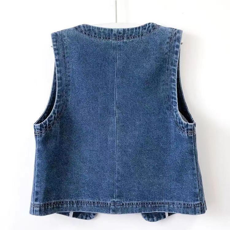 Hong Kong style retro denim vest short female slim vest 2023 spring and autumn new casual collarless waistcoat
