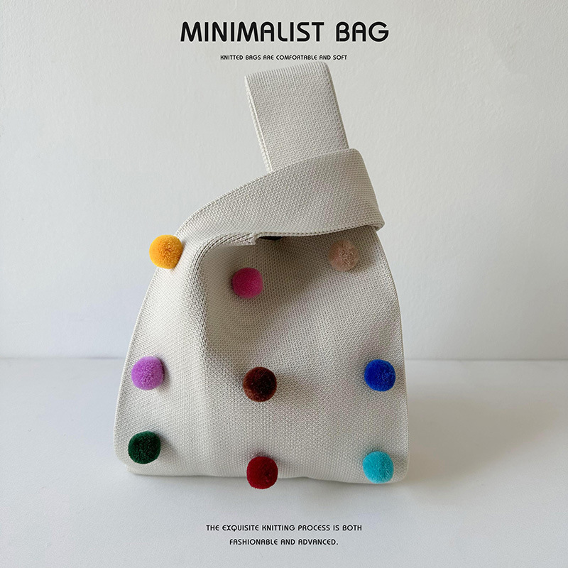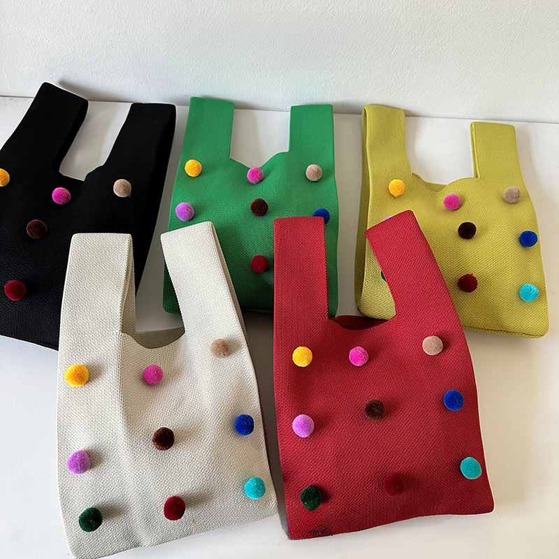 Korean Cute Colorful Ball Ball Knitted Bag Handbag Women’s Versatile Large Capacity Tote Bag Wrist Bag Manufacturers Wholesale
