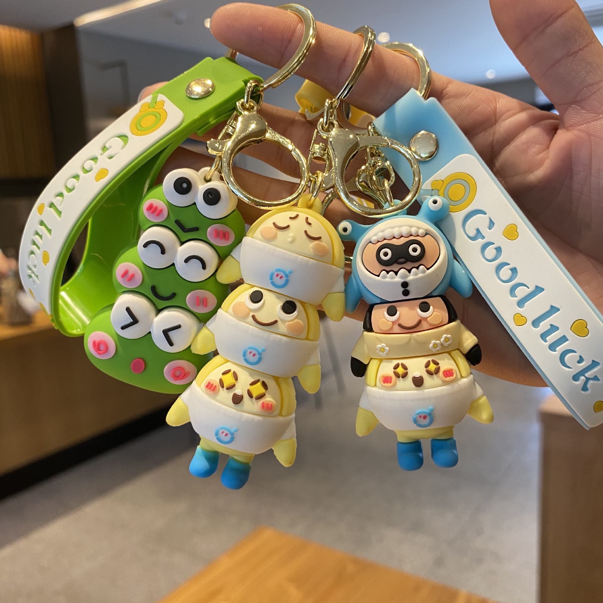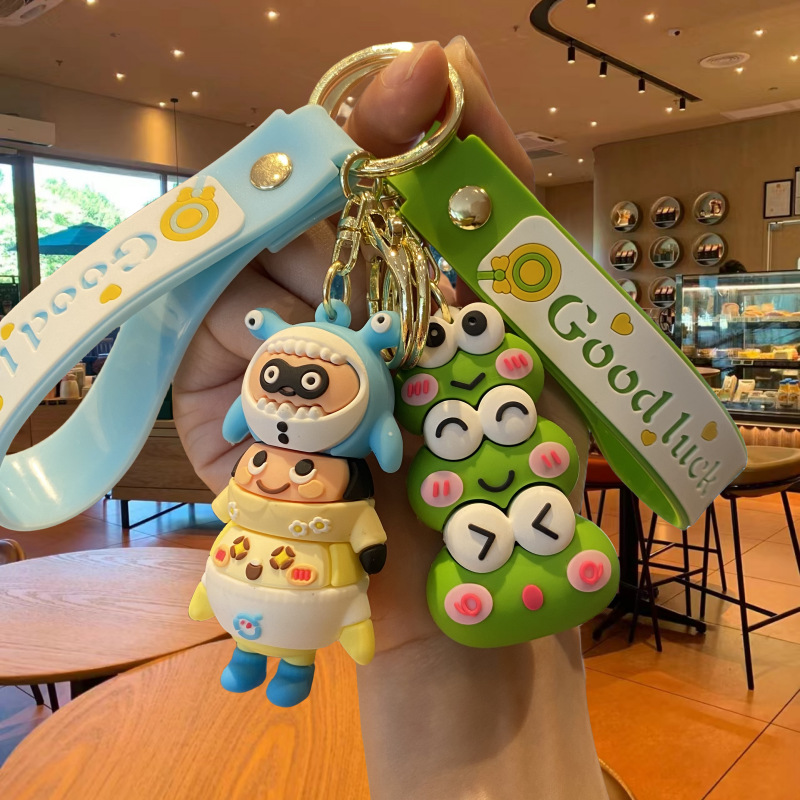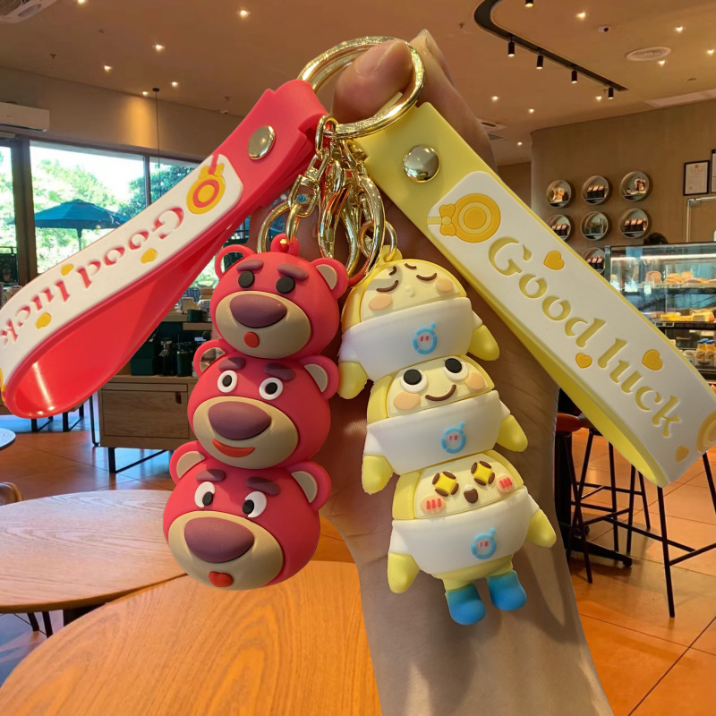 New Creative Cartoon Doll Egg Boy Party Stacking Joy Keychain Strawberry Bear Little Frog Car Key Chain Ring