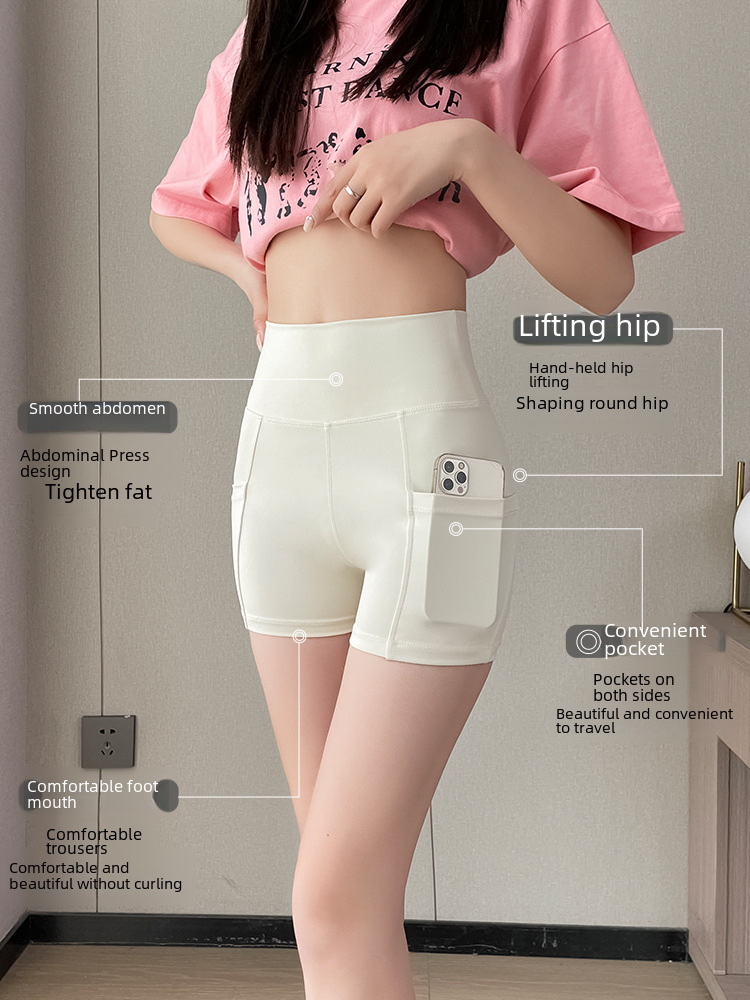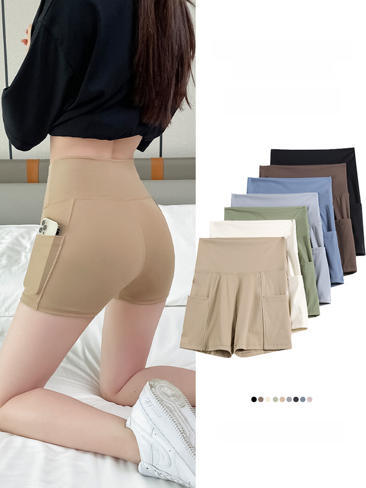 New Pocket Three-Point Shark Pants Women’s Summer Wear Thin Yoga Shorts Leggings High Waist Belly Tuck Safety Pants