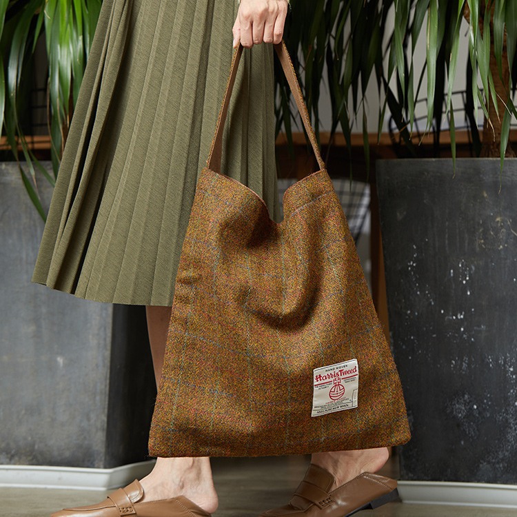 Plaid women’s bag, Harris Tweed, Harris Tweed, Light Luxury Large Shopping Bag, Hugh Vintage Tote Shoulder Bag