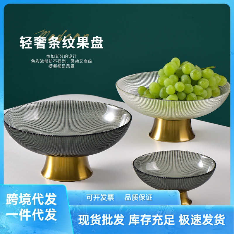 Simple Fashion Fruit Bowl Wholesale High Leg Fruit Bowl Glass Wedding Fruit Bowl Light Luxury European Style Striped Fruit Bowl Fruit Basket