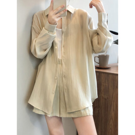 Yan Shuang Drape Breathable Sunscreen Shirt Set Women’s 2024 Summer Loose Thin Shirt Wide-leg Shorts Women’s 80573
