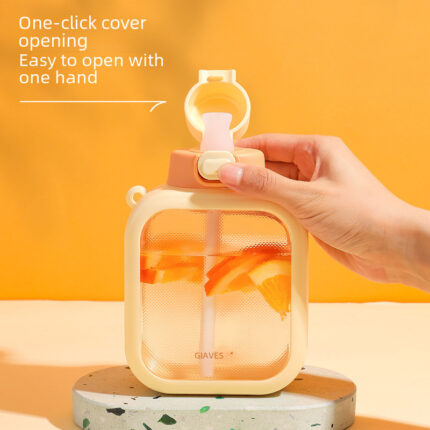 Large Capacity Plastic Cup Female Portable Strap Outdoor Straw Cup Square Creative Water Bottle Bounce Lid Water Cup Wholesale