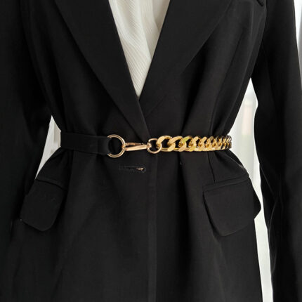Metal chain belt, women’s tunic trim, dress, belt, fashionable, versatile, suit, elasticated and thin waistband