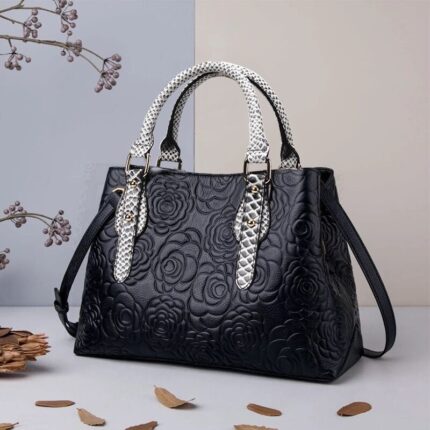 Qiandian leather handbag women’s 2024 new trendy large-capacity mom bag middle-aged large bag cowhide shoulder bag women’s bag