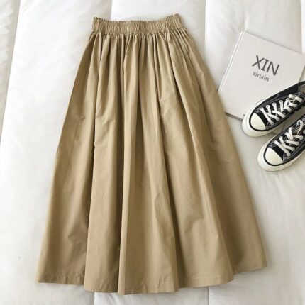 Pure cotton solid color cotton cargo khaki skirt women’s 2024 summer new Korean version versatile high-waisted A-line skirt